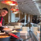 - Restauration variée en buffet, vin inclus : entrées chaudes et froides, choix de plats chauds, bar à pâtes, buffet de fromages et de desserts